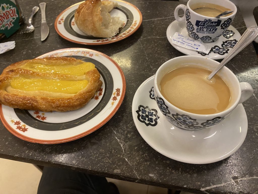 Esmortzem a una pastisseria prop de l’hotel.