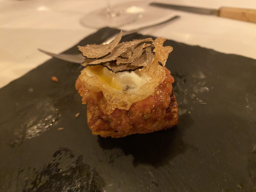 Steak tartar de vedella gallega i ou fregit trufat, una altra “delicatessen”