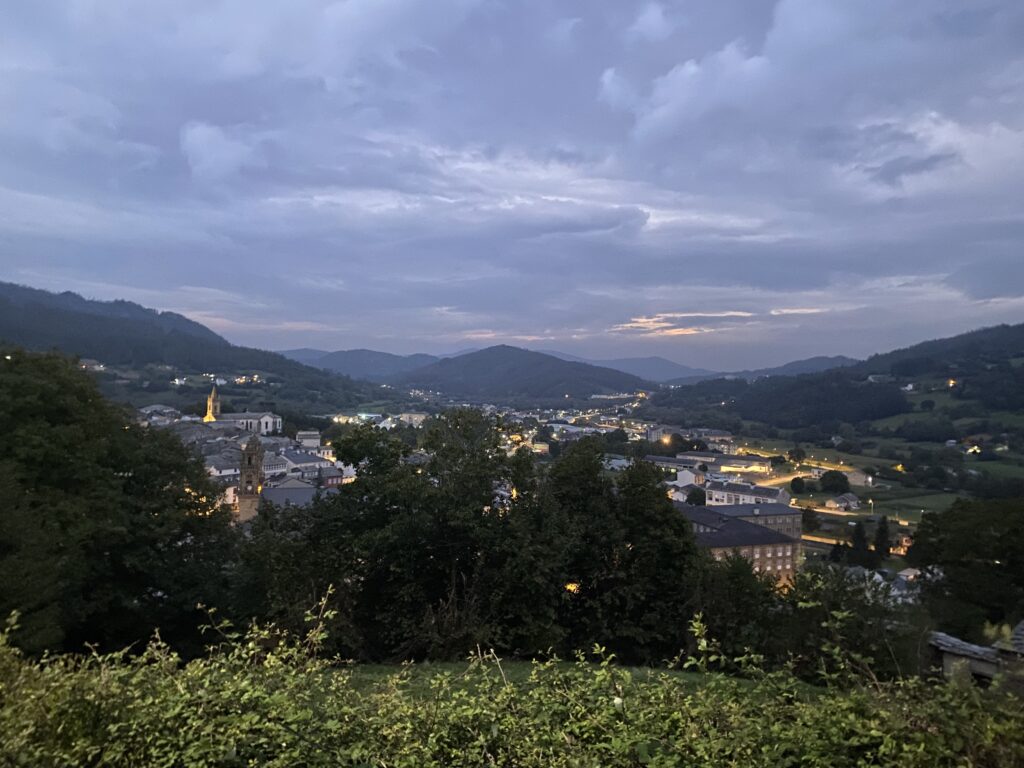Surto de Mondoñedo de nit, vaig pujant i me queda el poble baix….imatge molt xula!!