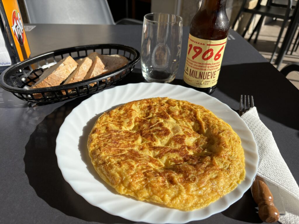 La seva dona me fa la truita, compleix amb les espectatives: individual i crueta…tot i ser les 9.40 tinc que acompanyar-la en una mil nueve…