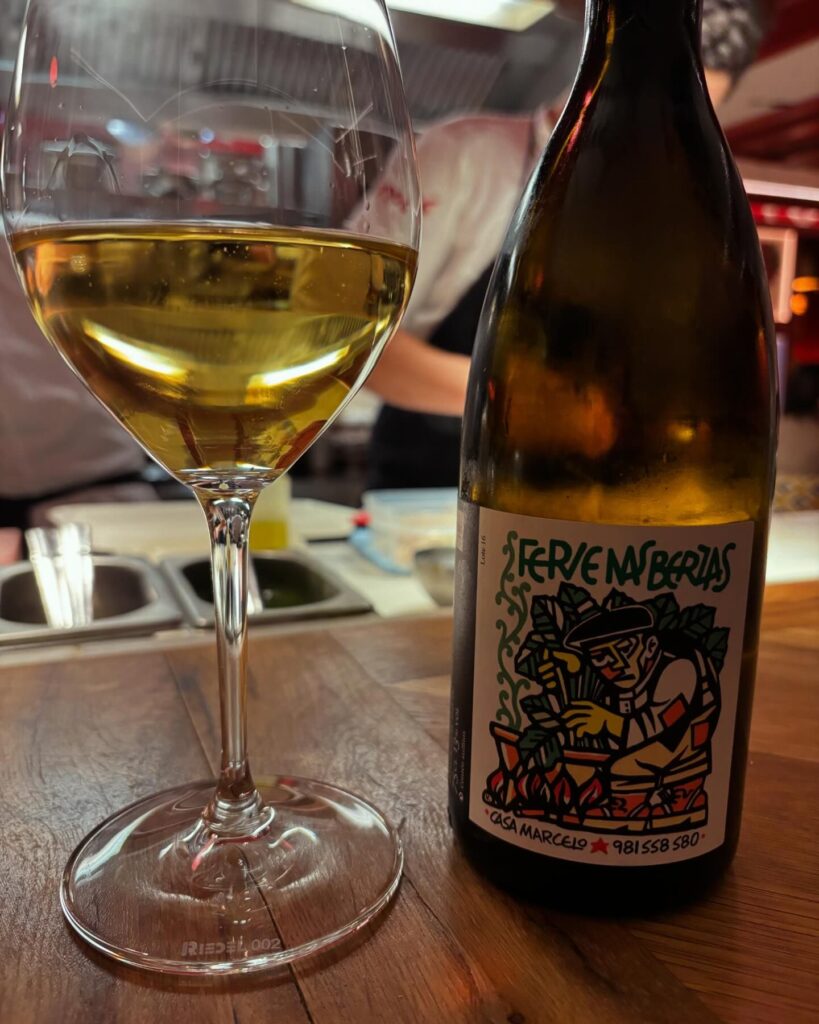 I parlant parlant…demano si té cosetes rares…me dona una Treixadura amb Godello de la DO Monterrei….moolt bo!!