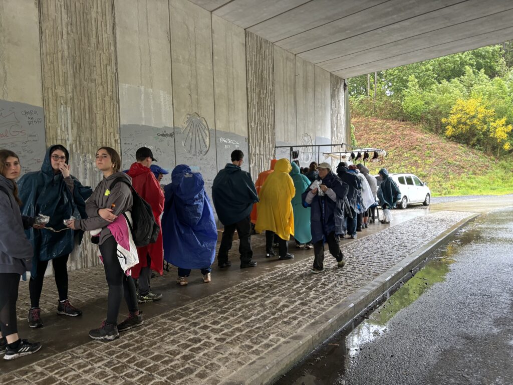 Passo per baix un pont…on hi ha una paradeta de souvenirs del Camino…..i….COLA PER COMPRAAAAAAR!!!! estem locos o que?
