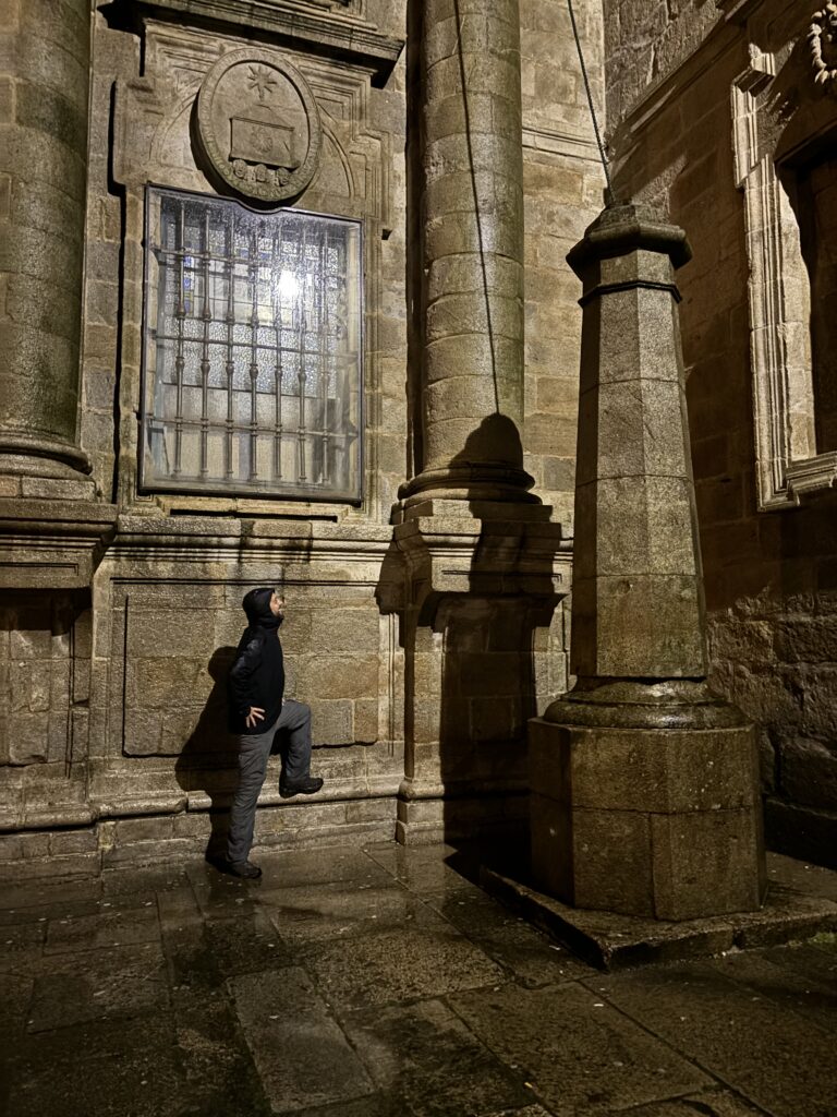 I abans d’arribar al Monte do Gozo, me sento que algú me diu:
