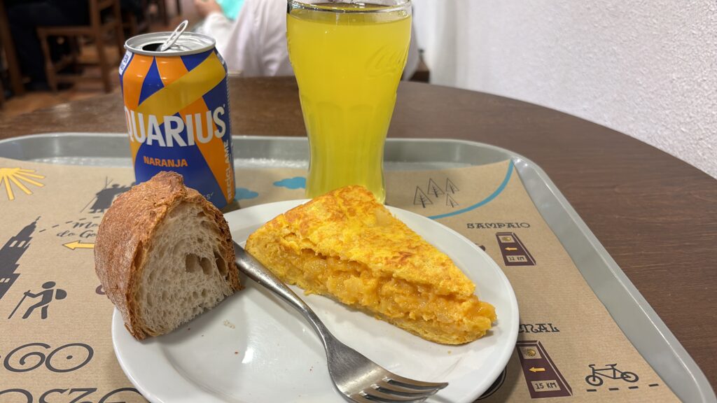 Paro a un dels bars que ja he anat, on tenen una bona truita (ja tenia planificat parar a esmortzar aquí…jiji)