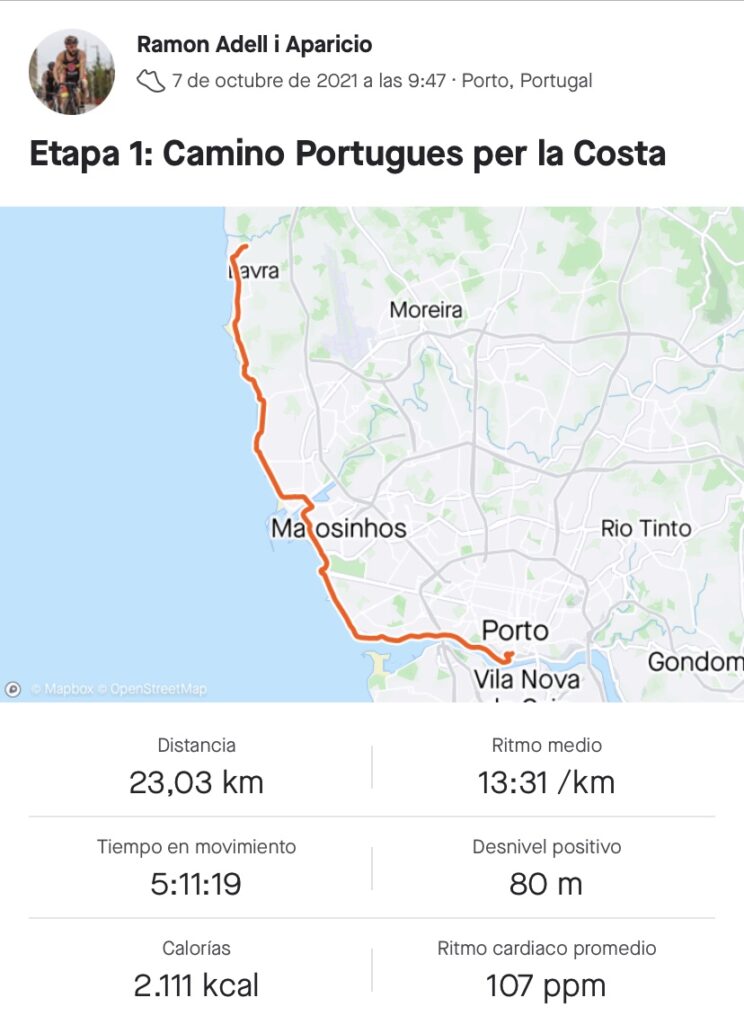 07/10/2021: Etapa 1: Casa – Oporto – Praia de Angeiras: 23 km