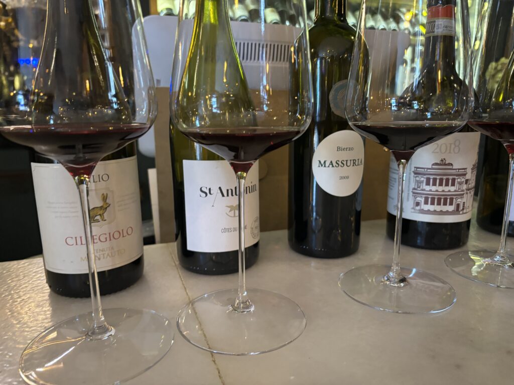 Justament estan tots dos catan unes ampolles que un comercial els ha oferit. M’inviten a fer la cata amb ells….tot vins tops…Italia…França…Bierzo…