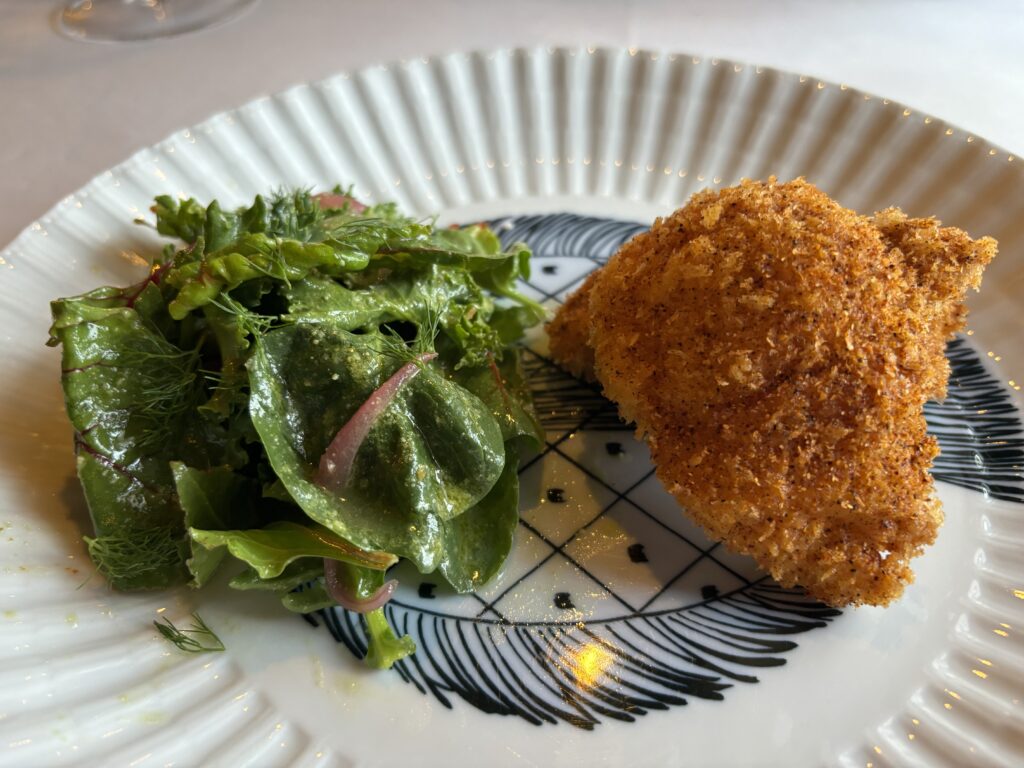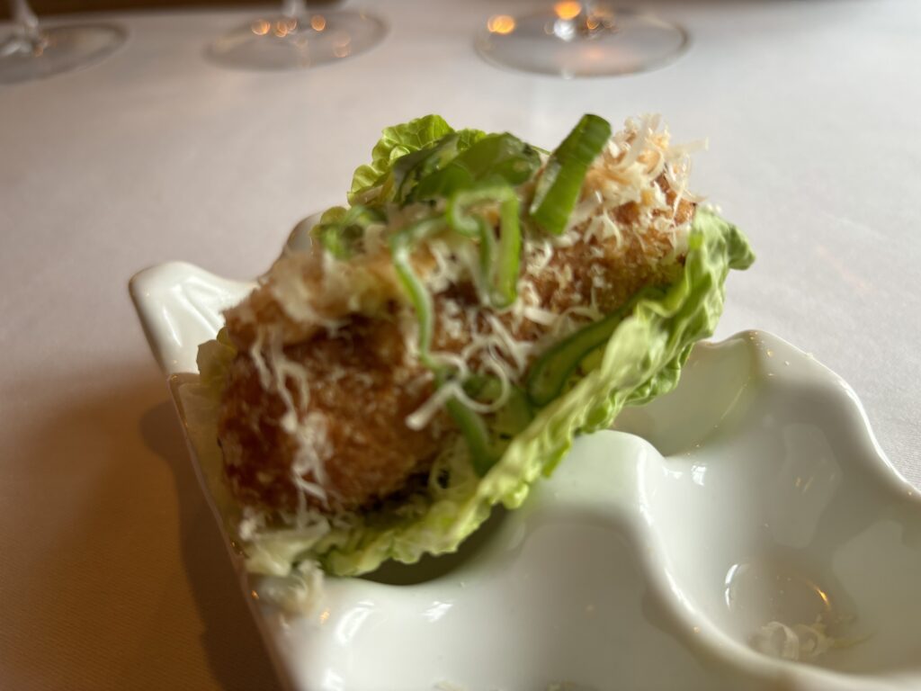 8️⃣🍽️Croqueta de capon, queso balmesano i un poc picant a l’estil taco