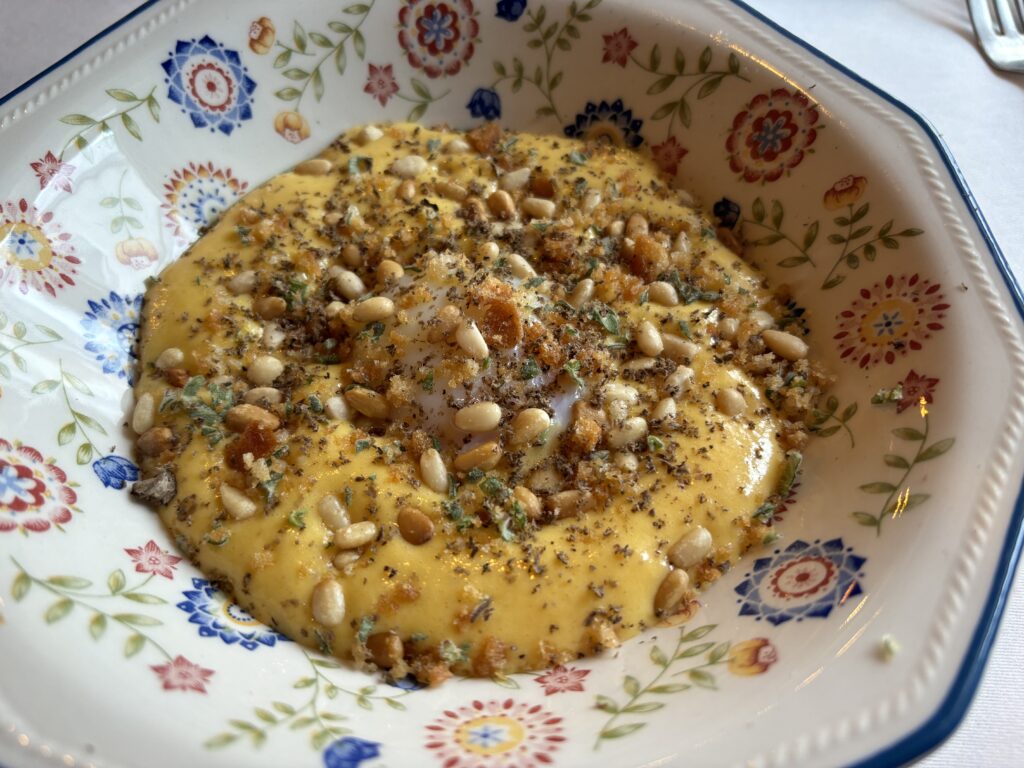1️⃣1️⃣Ou, pinyons, carbonara de formatge San Simon de Vilalba i panceta