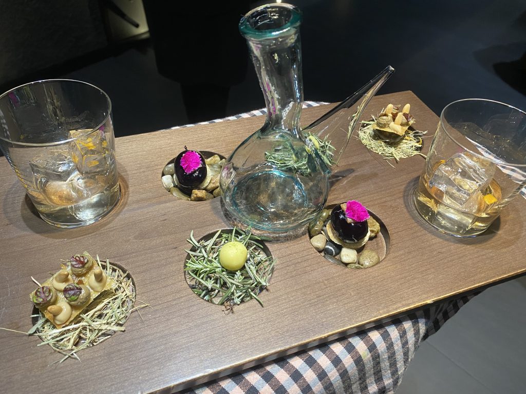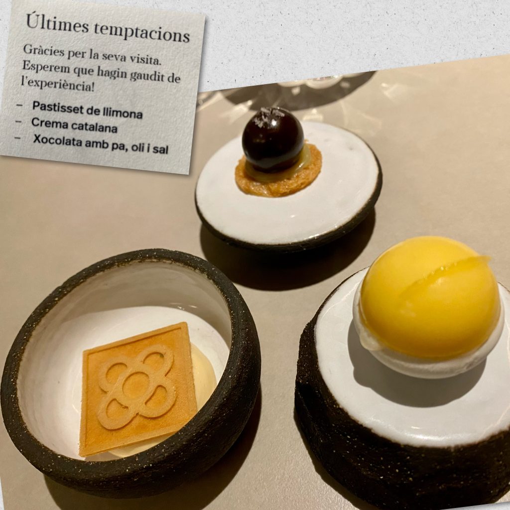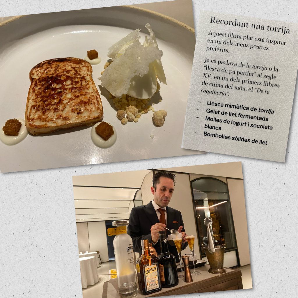🍽️L’oliva de faifó amb romaní / Falsa pedra de sofregit de tomaca, anxova de l’Escala / Pell de pollastre cruixent, panses, emulsió de pinyó 🍾Vermut