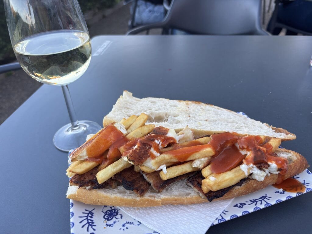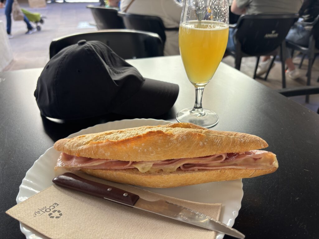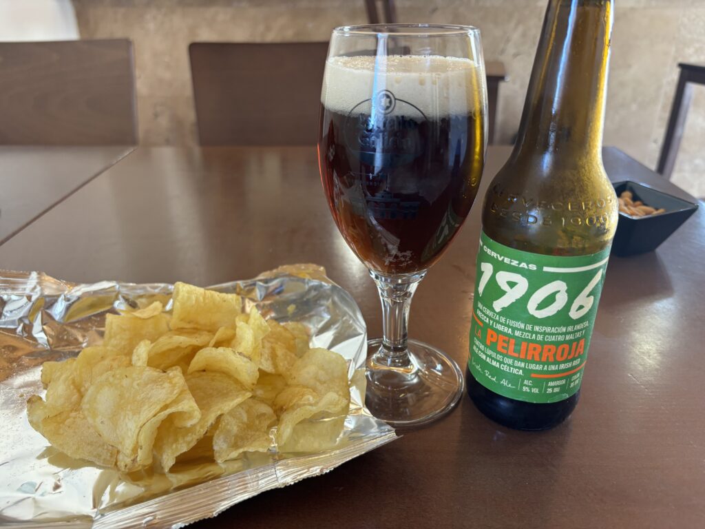 El camarero m’aconsella un bocata molt guarro: Panceta + queso cabara + salsa picante + patatas fritas…arreaaaaaaaaaa!!