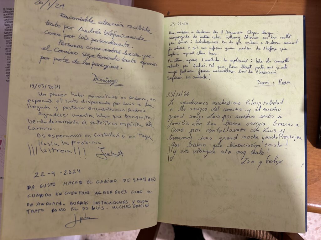 Ah! com a cosa curios: hi ha un llibre de registre i d’agraïments a l’alberg, com en molts llocs…