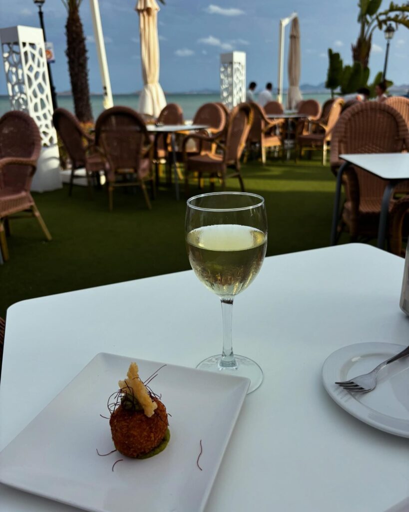 Inaugurant les Jornades de la tapa a Los Alcázares ala terrassa de l’hotelito: croqueta de foie, boletus i parmesà