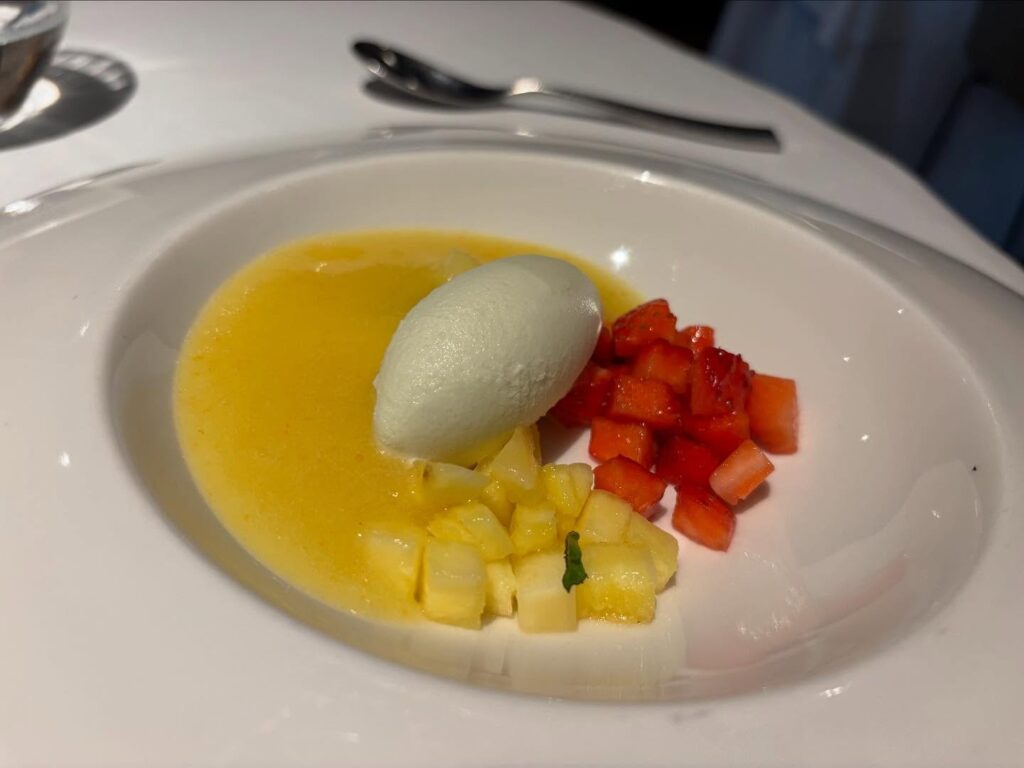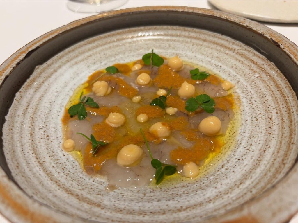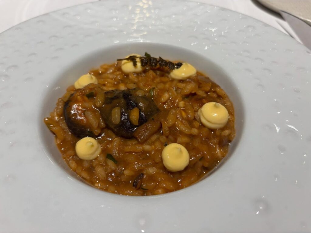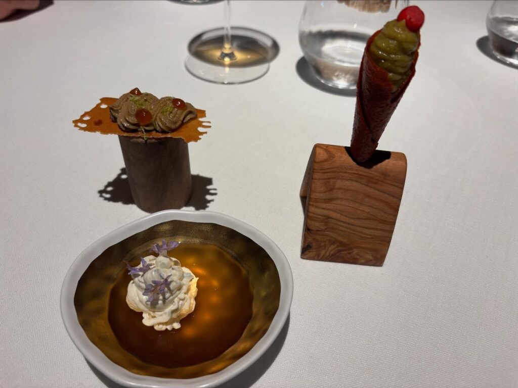 Gelatina de rabo bou amb crema de formatge fresc, Cucurutxo de primentó roig rojo en mousse carabassa