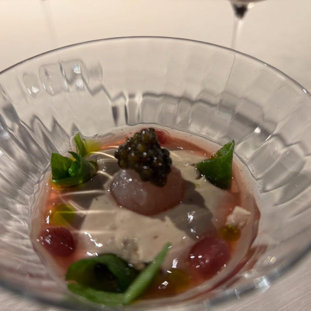 A més a la #tauladelxef que vaig poder estar, presenten el menú amb el maridatge que @carmensauch ha pensat amb qualitats i “rarezas” del mateix nivell del menú: vermuts envellits, blancs oxidatius, blancs fets de forma no tradicional, escumosos amb llargues criances, sidres de gel….
