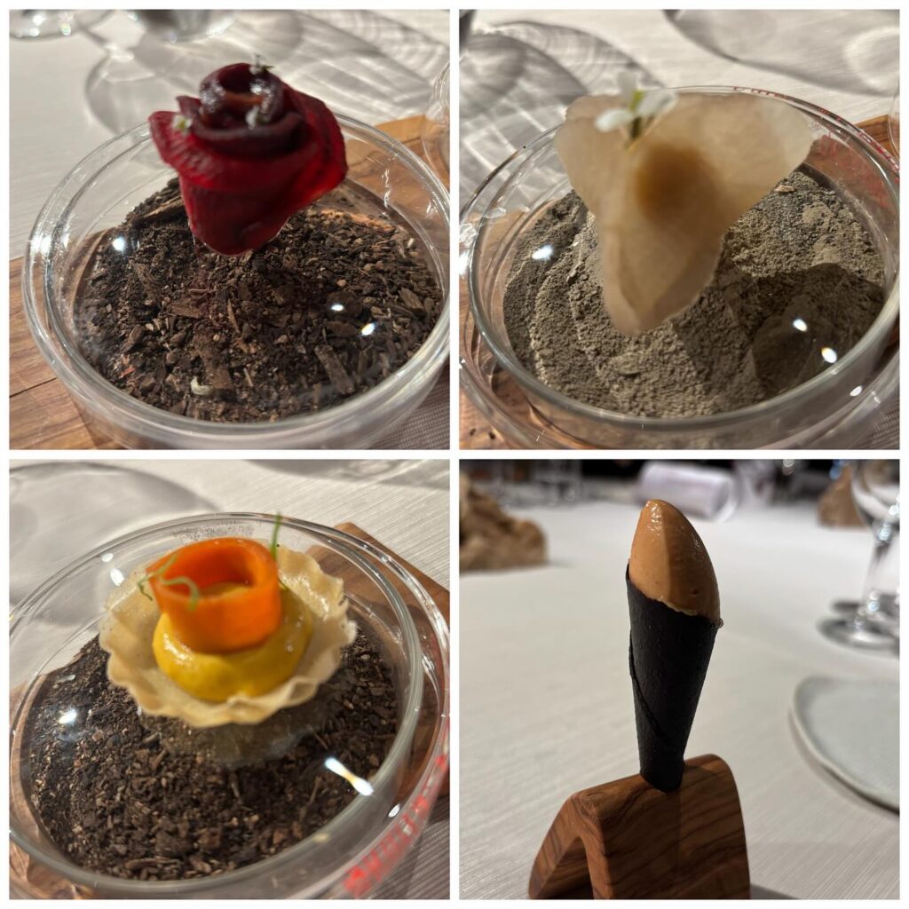 Han tornat a fer el mateix, ficar-ho tot a l’excel·lència amb tècnica i molt de sabor: pernil de cabra ibèrica, flam de foie, sobres de peix, prepostres apiàcis, postres de….calamaaaar…i més etc’s i etc’s…