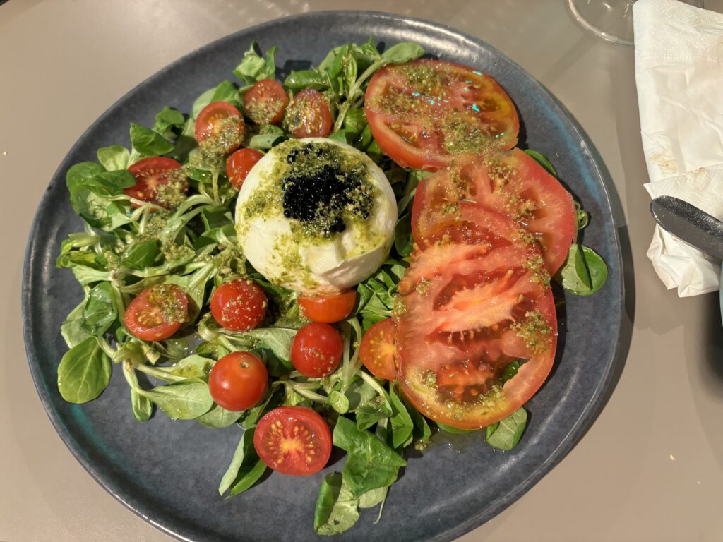Una amanida amb burrata i pesto