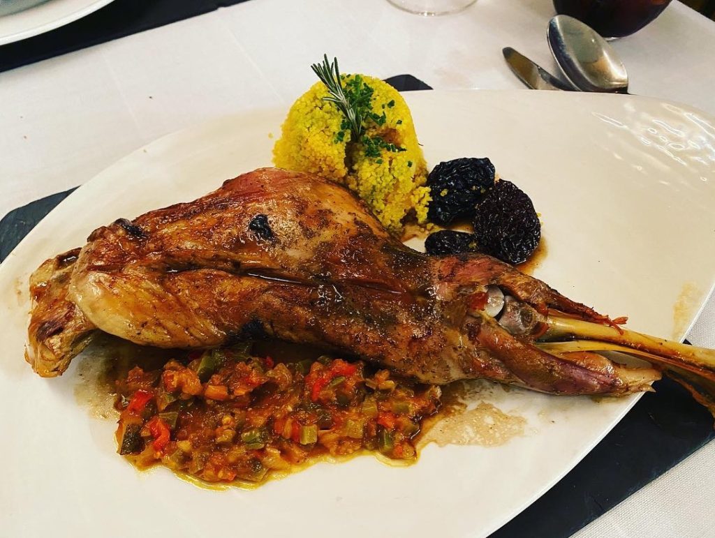 4️⃣🍗“paletilla de cordero lechal” amb cuscús al safrà, samfaina de nopals i prunes negres.